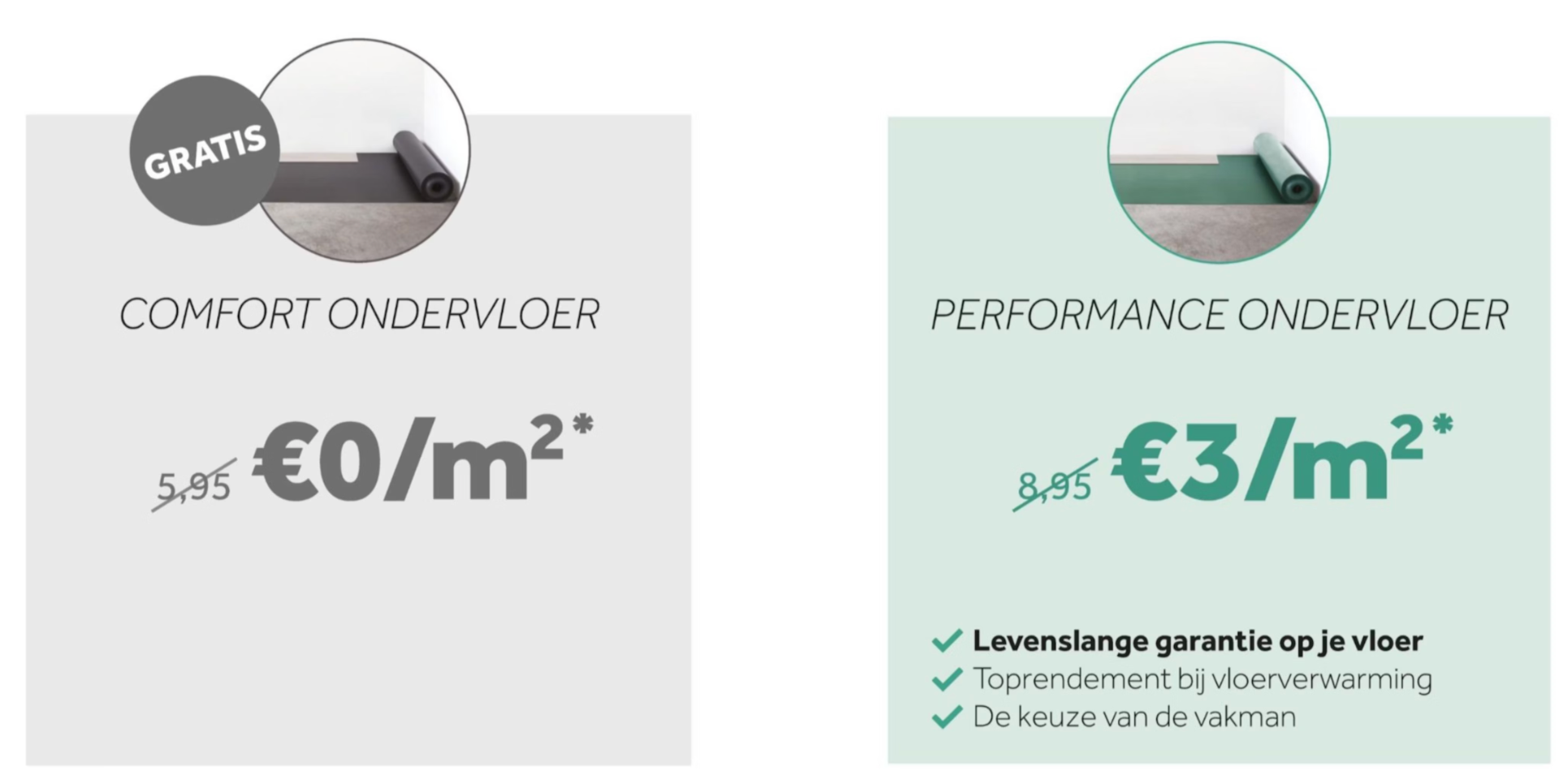 Bij aankoop van minimaal 15m² Floorify vloer profiteer je van een exclusief voordeel:• Gratis Comfort ondervloer• Of Performance ondervloer voor slechts €3 per m²
